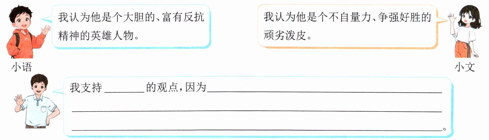 5. (思辨探究)对于孙悟空,人们往往有不同的评价。你更同意谁的观点?结合选段和《西游记》的其他内容说明理由。