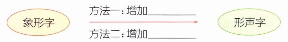 1. (思维导图)象形字可以转化为形声字,请结合①②两个自然段的内容,完成下图的填空。