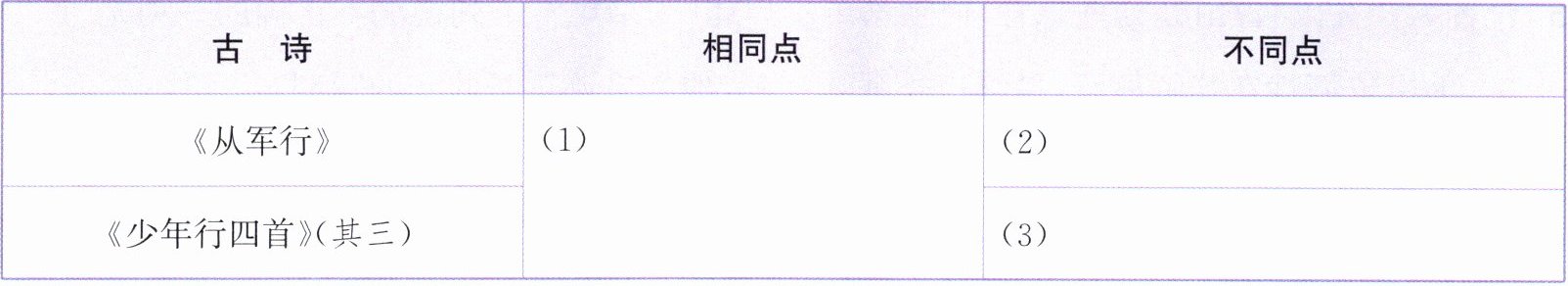 4. (链接教材)《从军行》和本诗都属于边塞诗,想一想,这两首诗有何异同点?完成下表。