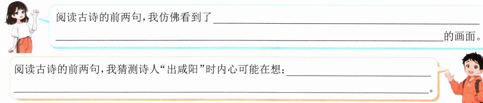 的画面。阅读古诗的前两句,我猜测诗人“出咸阳”时内心可能在想: