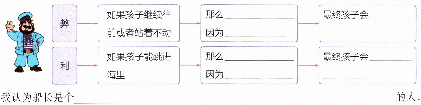 示例:(3)作为孩子的父亲和船长,他应该在孩子冒险之初及时发现、制止并保护他。