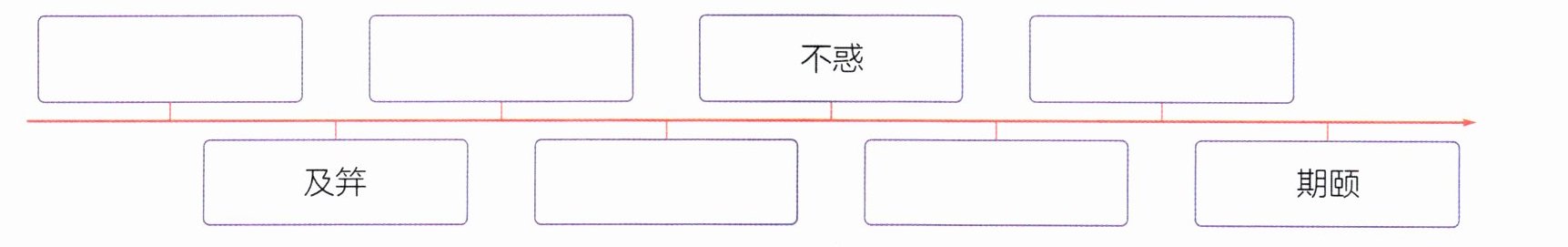 )。答案:从左到右:豆蔻年华 弱冠 而立 花甲 古稀 1. 不惑 2. 花甲 3. 豆蔻年华