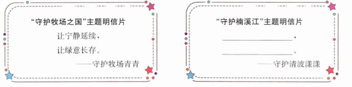 4. (创意表达)结合选文二,照样子完成“守护楠溪江”主题明信片。