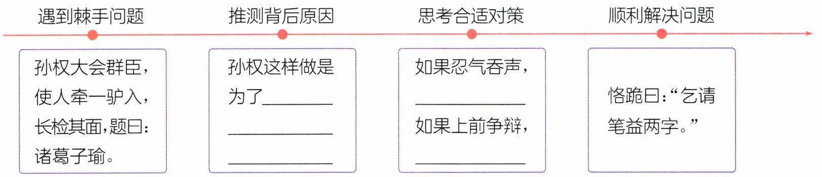 )2. (思维导图)阅读文章,想一想诸葛恪是怎么应对难题的。完成下面的思维导图。