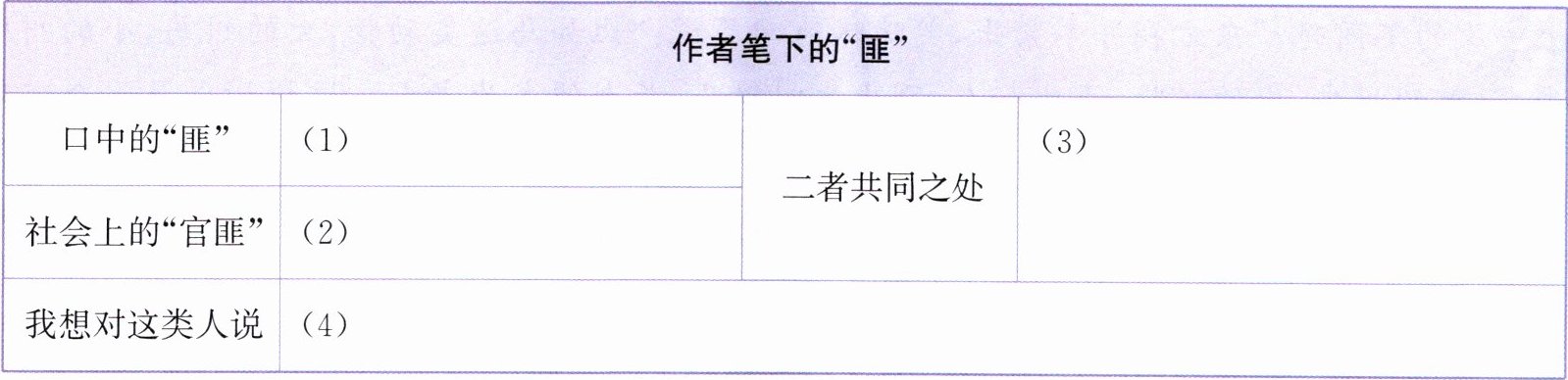 3. 对于作者笔下的“匪”你有怎样的认识呢?请阅读选文后完成表格。