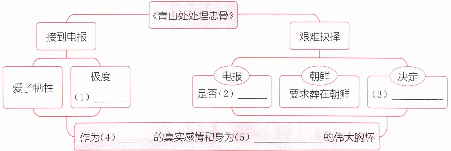 五、回顾课文内容,将思维导图补充完整。