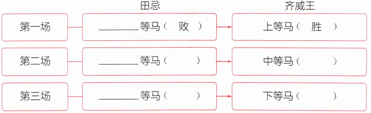 五、田忌听从了孙膑的建议,对阵方案及结果是怎样的呢?填一填。