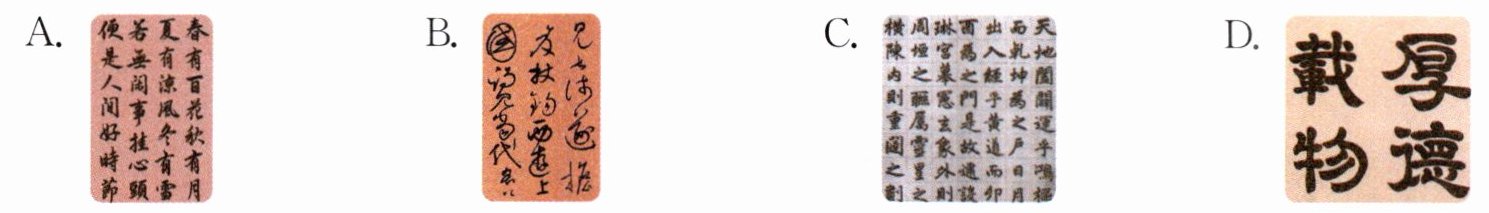1. [认识书法]下面的书法作品中,用行书写成的是 (