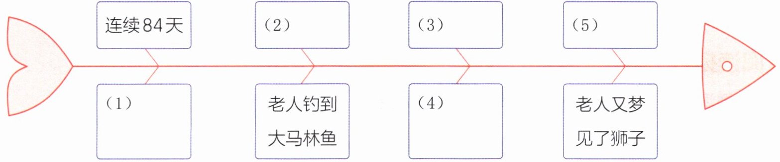 1.(阅读要素)阅读梗概,想一想这部小说写了老人的哪些事,完成下面的思维导图。