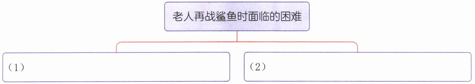 2.(思维导图)老人再战鲨鱼时面临了哪些困难?阅读节选内容,完成下面的思维导图。