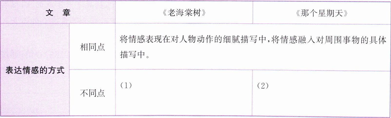 6.(链接教材)本文和《那个星期天》都是史铁生所写,都表达了作者真实的情感。我们知道了这两篇文章在情感表达方式上的相同点,请把不同点写在表格中。