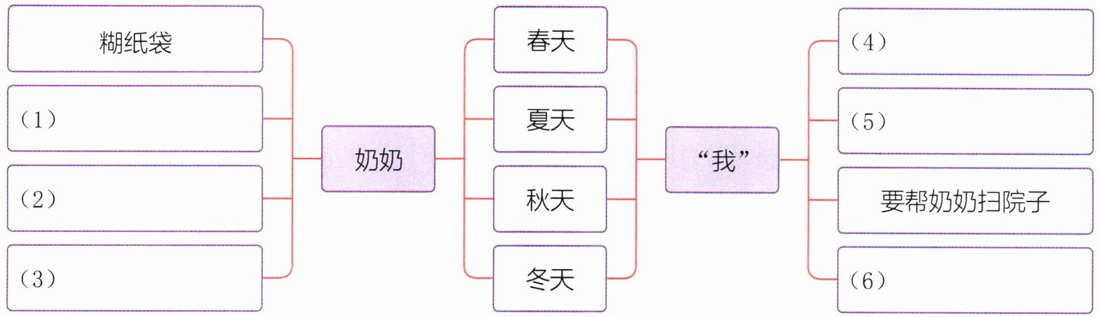 1.(思维导图)文中海棠树下的故事让人动容,请理解并完成思维导图。
