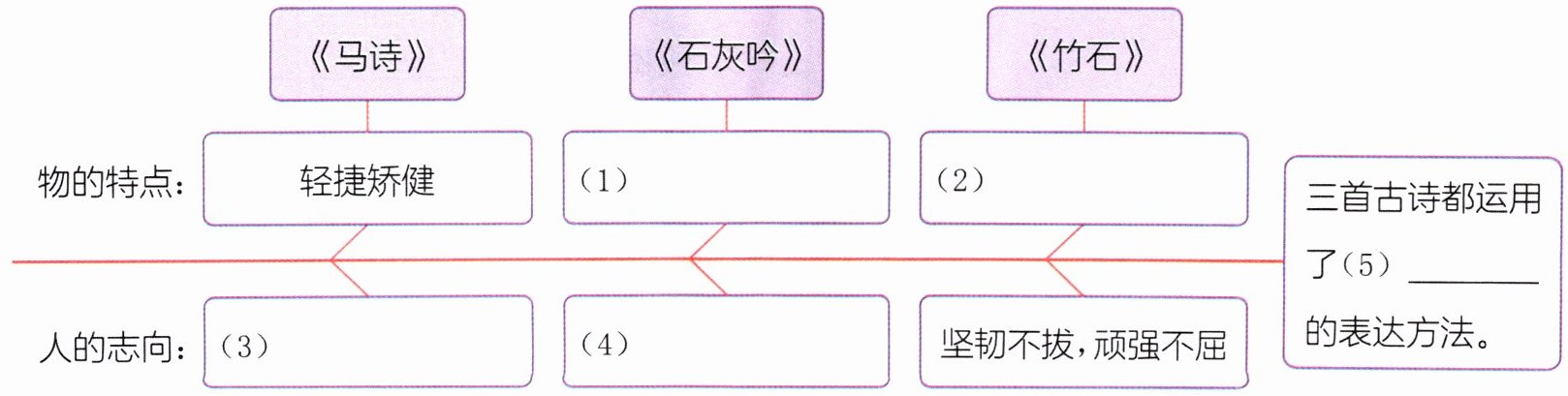 整理诗句 四、同学们对本课三首古诗进行了整理,请根据课文内容填空,并完成思维导图。