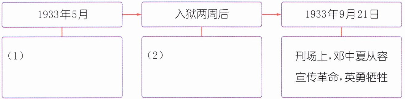 答案:1. (1)邓中夏被捕 (2)邓中夏被提审,向狱友表演五问五答