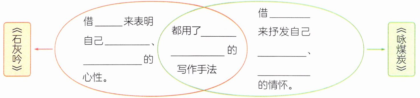 4. (链接教材)结合课内古诗《石灰吟》,对比阅读,完成下面的思维导图。