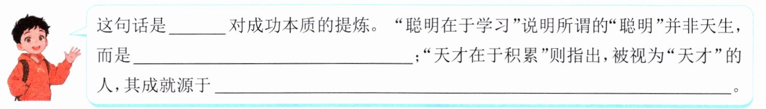 三、在活动准备过程中,老师打算朗读下面的课文选段作为对同学们的寄语。请你阅读课文《聪明在于学习,天才在于积累》的选段,完成练习。