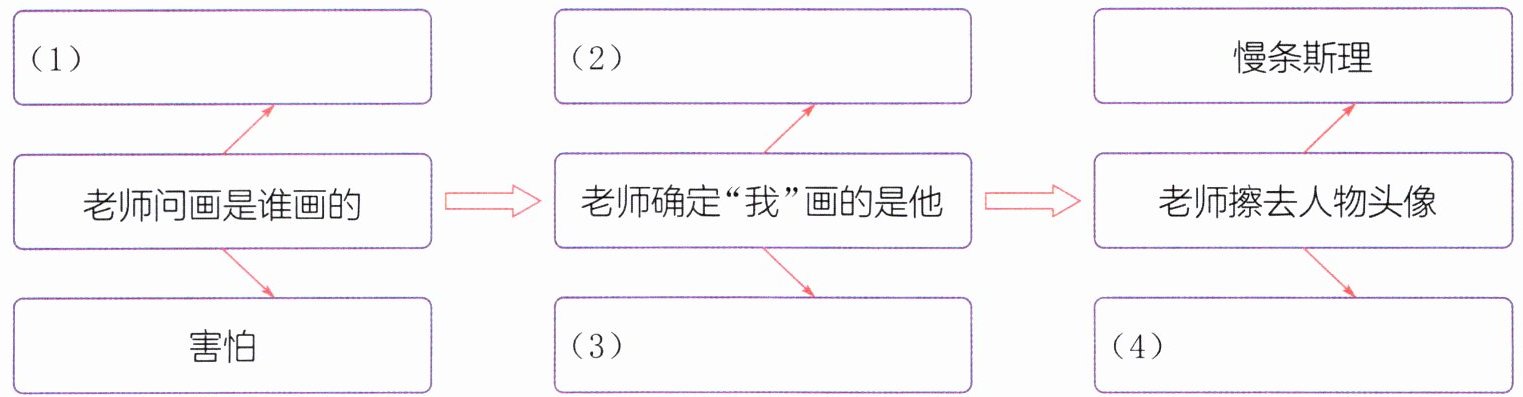1. (阅读要素)随着故事的发展,老师的神态以及“我”的心理都在不断发生变化。阅读短文,完成思维导图。
