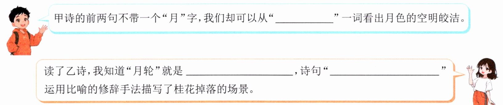 1. (情境学习)两位同学针对两首古诗的前两句展开了讨论,请把他们的对话补充完整。