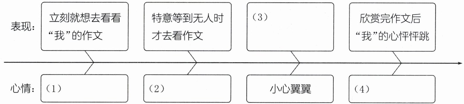 表现:立刻就想去看"我"的作文 特意等到无人时才去看作文 (3)