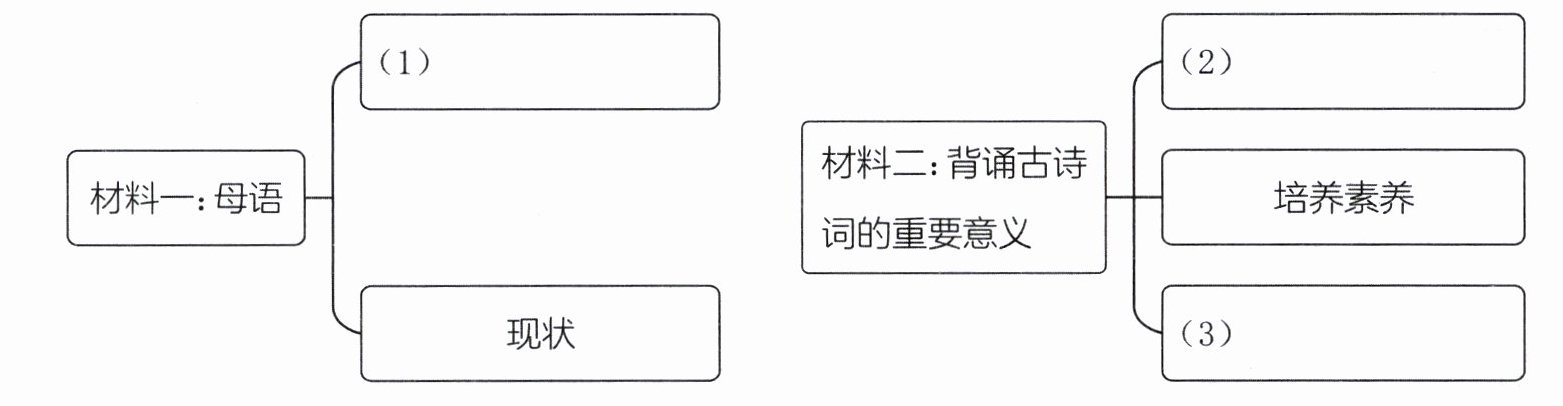[材料一]如果外语是人生的工具,那么,母语毫无疑问是掌握工具的手。可是,当人们投入巨大精力学习外语,却尴尬地发现,自己的母语水平在明显下降。调查发现,中国学生母语水平不容乐观,有的学生连深奥一点的现代文也理解不了,普遍存在词汇贫乏、言不达意的情况。