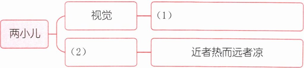 2. 两小儿辩斗时,从不同的角度看问题,依据也各不相同。请根据课文内容,补全下面的思维导图。