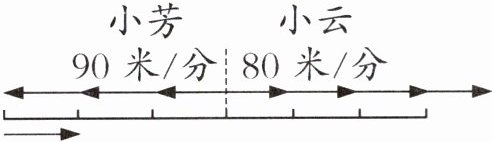 例1 小芳每分钟行 90 米,小云每分钟行 80 米。两人从同一地点同时出发,相背而行,3 分钟后小芳转头去追小云,再经过多少分钟小芳能追上小云?