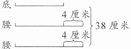 由图可知,从 38 厘米里去掉两个 4 厘米,就是底边长的 3 倍,由此可求出底边长 $ (38 - 4 - 4) ÷ 3 = 10 $(厘米),则腰长 $ 10 + 4 = 14 $(厘米)。