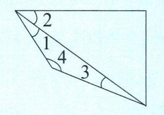 例1 下图中 $ ∠ 1 + ∠ 2 = 57° $,$ ∠ 3 = 14° $,$ ∠ 4 = 145° $,求 $ ∠ 2 $ 的度数。