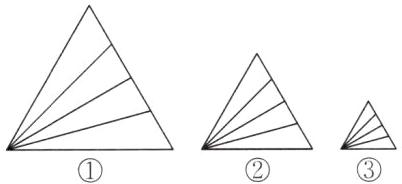 解析 将题图拆分成图①、②、③。图①中,基本三角形有4个;由2个基本三角形组成的三角形有3个;由3个基本三角形组成的三角形有2个;由4个基本三角形组成的三角形有1个,一共有(4+3+2+1)个三角形。同理,图②和图③中的三角形都有(4+3+2+1)个,从而求出三角形的总个数。