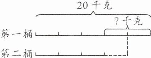 有两桶油,第一桶重 20 千克,从第一桶中倒$$ \frac{1}{5} $$给第二桶后,两桶油就同样多。原来第一桶比第二桶多多少千克?