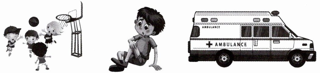观察图片可知,故事围绕“打篮球受伤后救护车救助”展开。用一般过去时叙述,包含时间、地点、人物活动、意外发生及救助过程。开头描述打篮球场景,中间写受伤经过,结尾写救护车救助结果,控制词数约70词。