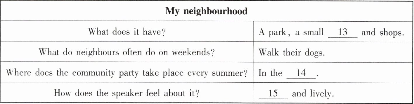 听第一篇短文,回答第13至15小题。请根据短文内容,选择正确答案,完成信息记录表。