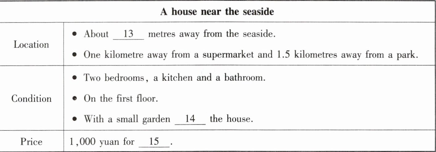 听第一篇短文,回答第13至15小题。请根据短文内容,选择正确答案,完成信息记录表。