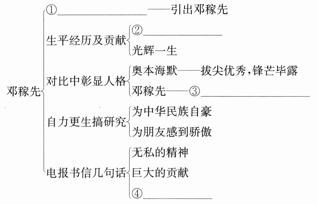答案:3. ①百年屈辱的历史 ②“两弹”元勋 ③忠厚平实,真诚坦白 ④永恒的骄傲