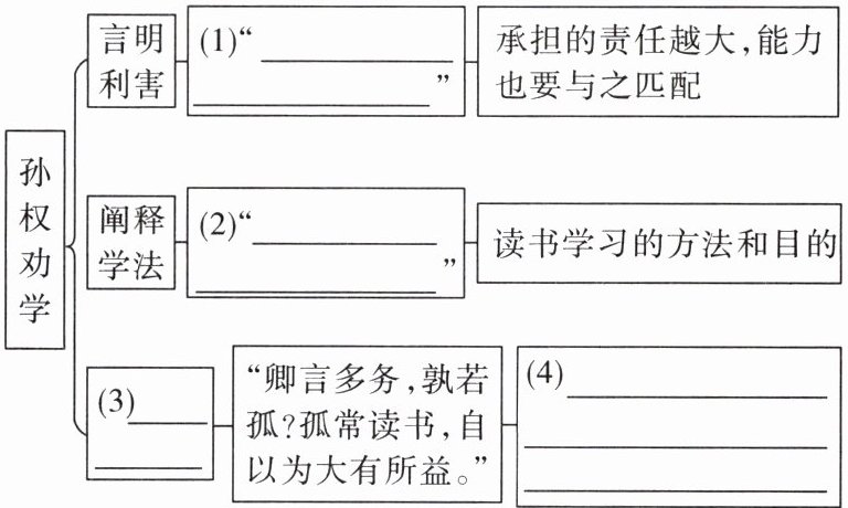 8. 劝说是一门艺术,孙权规劝吕蒙读书就体现了极高的艺术性,下面是小蒙同学对孙权劝学思路的梳理,请你帮助完成下图。(4 分)