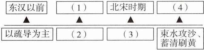 答案:2. (1) 东汉时期 (2) 开凿山阜高地,修筑千里堤防 (3) 筑堤、堵口,开引河、减河 (4) 明清两代