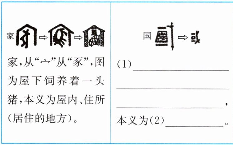 9. 请结合“家”字的图文解析和“国”字的图片资料,探究“国”的含义。