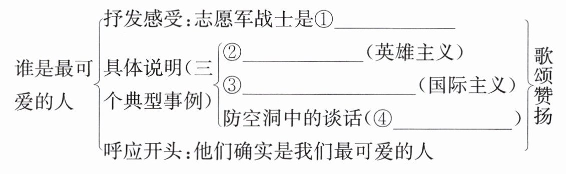 答案:3. ①最可爱的人 ②松骨峰战斗 ③马玉祥火中救小孩 ④爱国主义