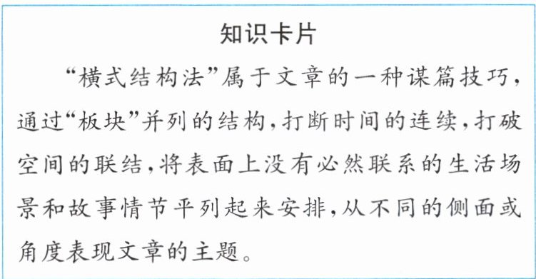 5. 本文和课文《邓稼先》一样,都采用了“横式结构法”,请根据下面的知识卡片,结合文章内容分析这种结构的好处。(4 分)