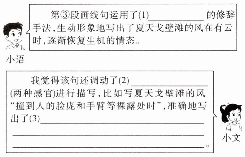 6. (1) 拟人 (2) 视觉和触觉 (3) 夏天戈壁滩的风在有云时带给人的刺痛感