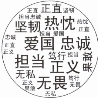 7. 为了解同学们心目中最美英雄品格,小徽进行了校园调查,并制作了右边的词云图。请你选择词云图中的两个关键词,仿照画线句续写句子,组成一段赞颂英雄精神的文字。
