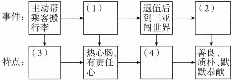 4. 请结合选文内容,梳理文中与网约车小伙有关的事件及其人物特点,补全下图。(4 分)