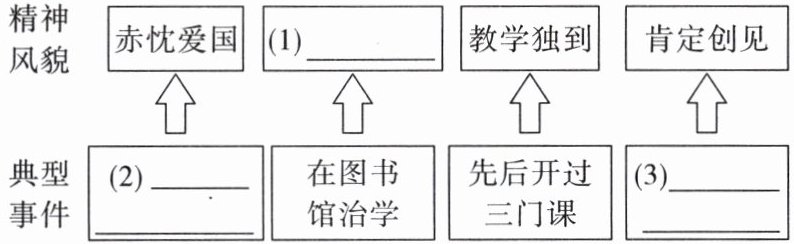 (1)专心治学 (2)抗战期间蓄须明志 (3)夸赞读书报告
