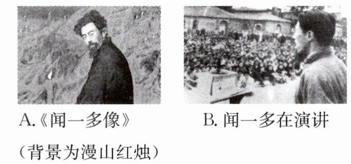 8. 小科同学负责制作先贤的展板,想为闻一多先生的展板选择合适的配图,但他拿不准该选下面哪幅图。请结合你对先生的了解及画面内容,帮他挑选并简要说明理由。