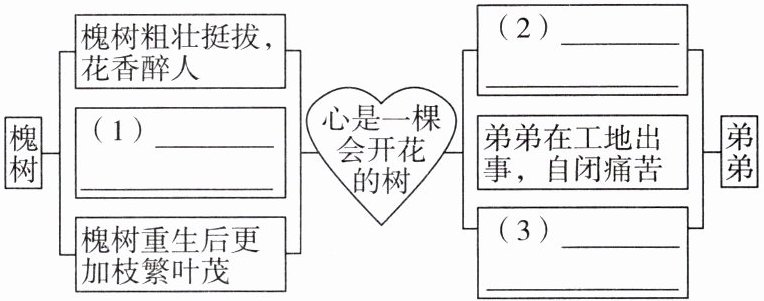 3. 小徽将文中槐树的生长过程与弟弟的人生经历进行比较后,制作了一张思维导图,请你把空缺的部分补充完整。(3分)