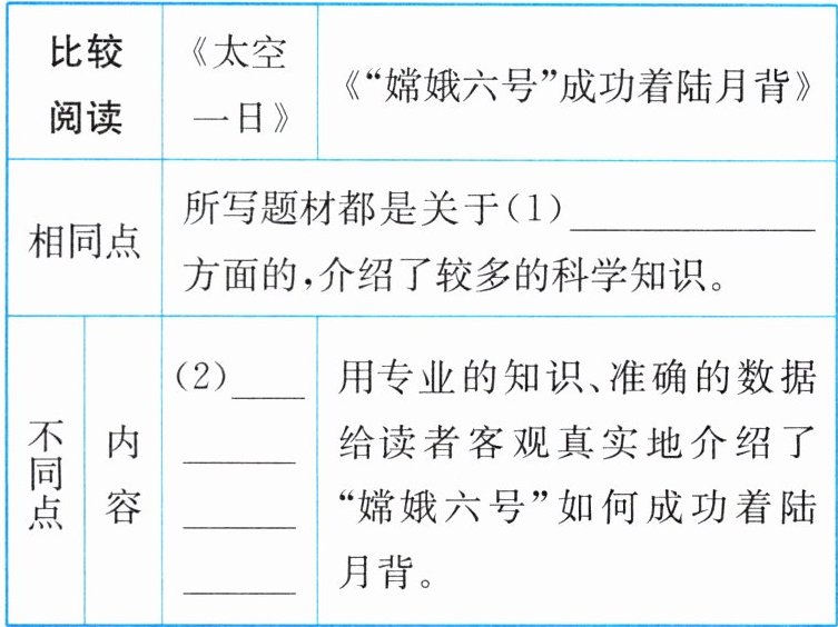 6. (创新设问)回顾本学期所学课文《太空一日》,完成下表。(6 分)