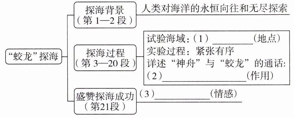 答案:3. (1) 马里亚纳海沟 (2) 展现我国科技事业的伟大成就 (3) 骄傲、自豪