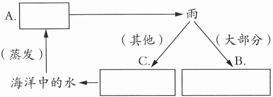 答案:五、1. (1)√ (2)× (3)√ (4)× 2. A. 云 B. 被树木和其他植物吸收 C. 流入河中 增加 减少 状态
