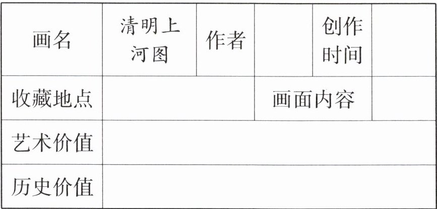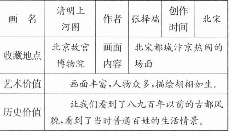 二、介绍《清明上河图》,根据课文内容完成资料小档案。