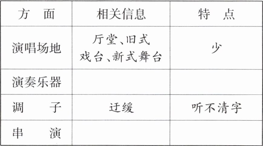 阅读短文,梳理关于昆曲的信息,借助关键词完成下面的表格。
